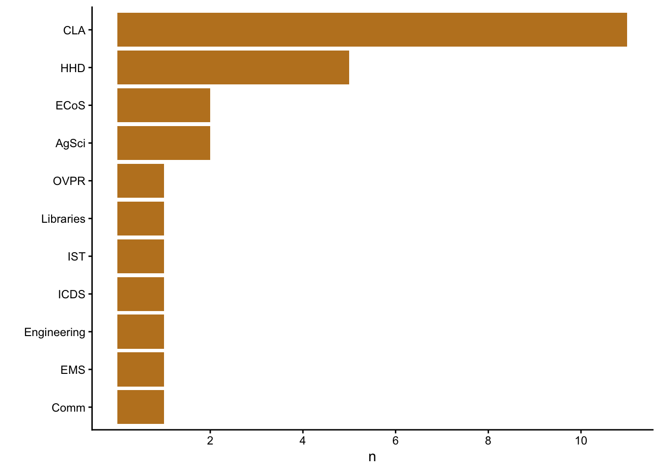Figure 1: Data about the home colleges or units of registered participants. See Registration Data for details.