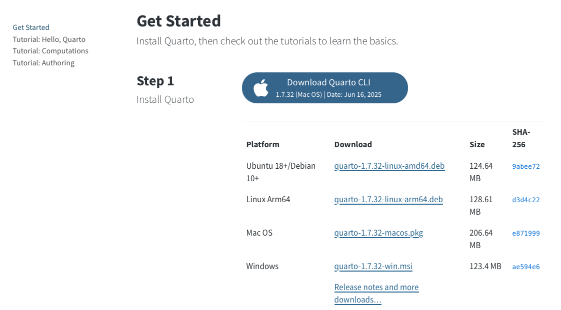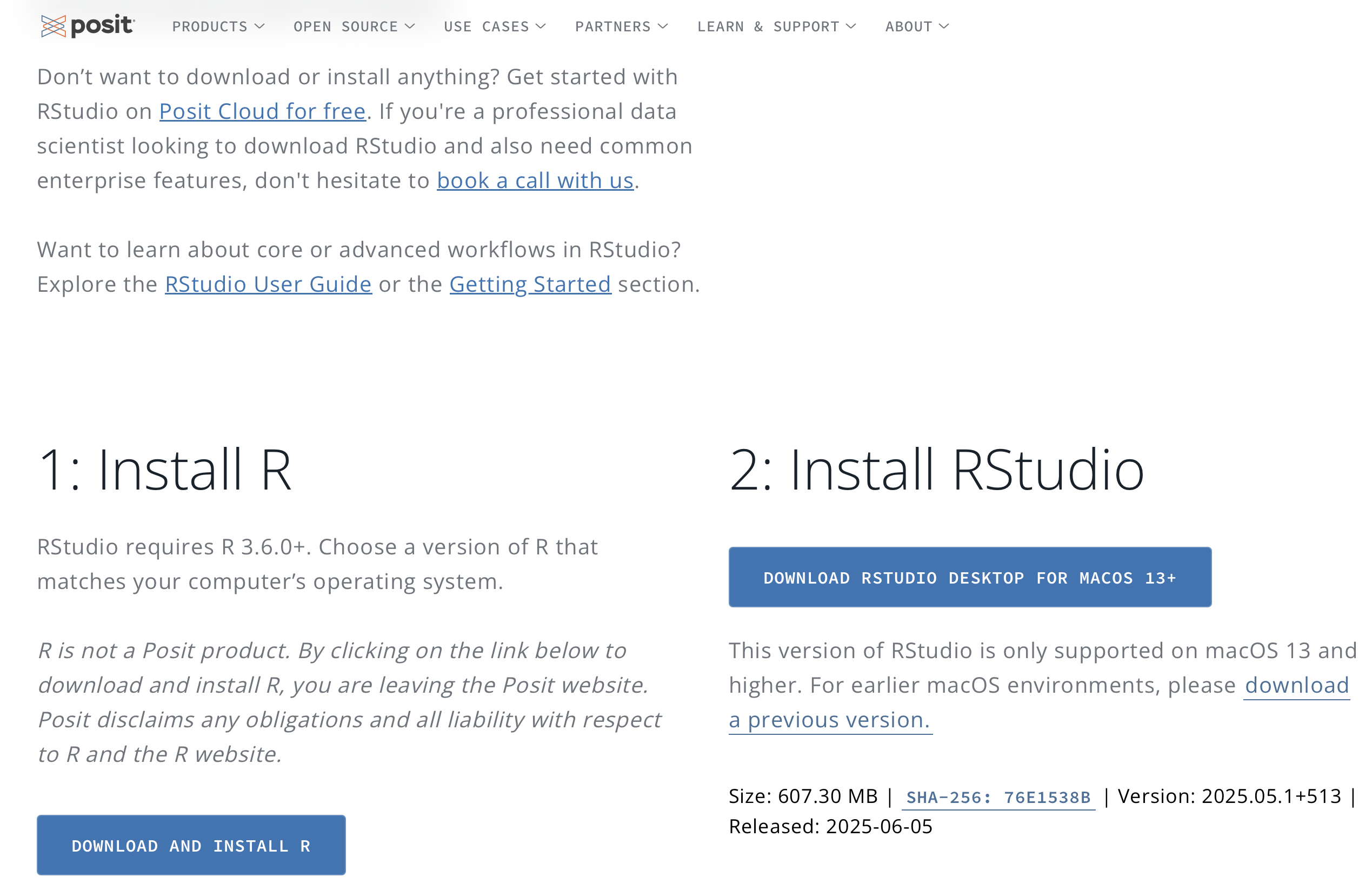 This page briefly describes how to install RStudio and Quarto on your personal computer.